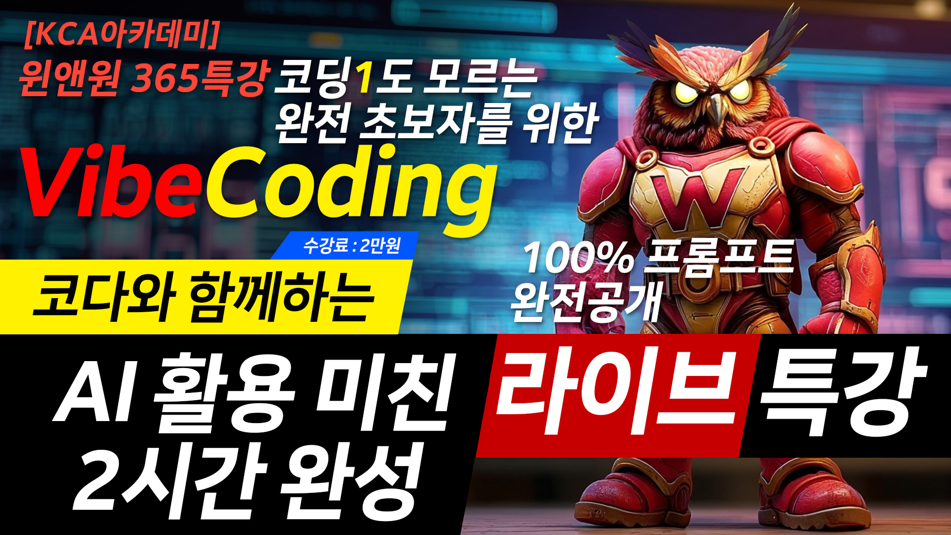 | 개요 | 1. 단 1회 Zoom 교육으로 완성 2. 바이브코딩의 두려움을 즐거움으로 바꾸는 재밌는 교육진행 3. 9월 25일 목요일 PM 08:00 ~ PM 10:00 (2시간 완성) |